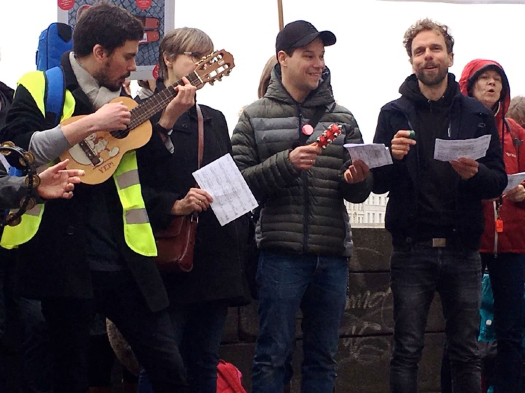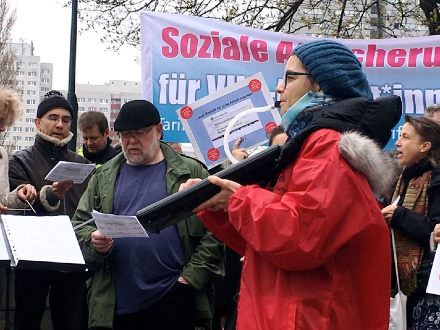 Hier ein paar Bilder von der ersten Demo vor der Senatverwaltung für Finanzen. Ob er talentiert genug ist? ;-)