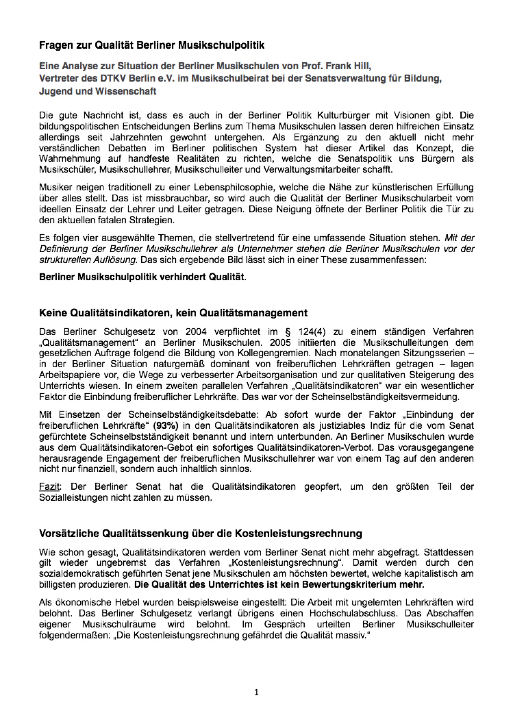 LBM zu den Kernproblemen der Berliner Musikschulen